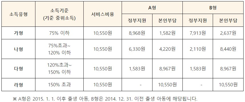 발생하는 가정의 만 12세 이하 아동을 대상으로 아이돌보미가 찾아가서 돌봄을 제공하며, 이용요금은 소득 수준에 따라서