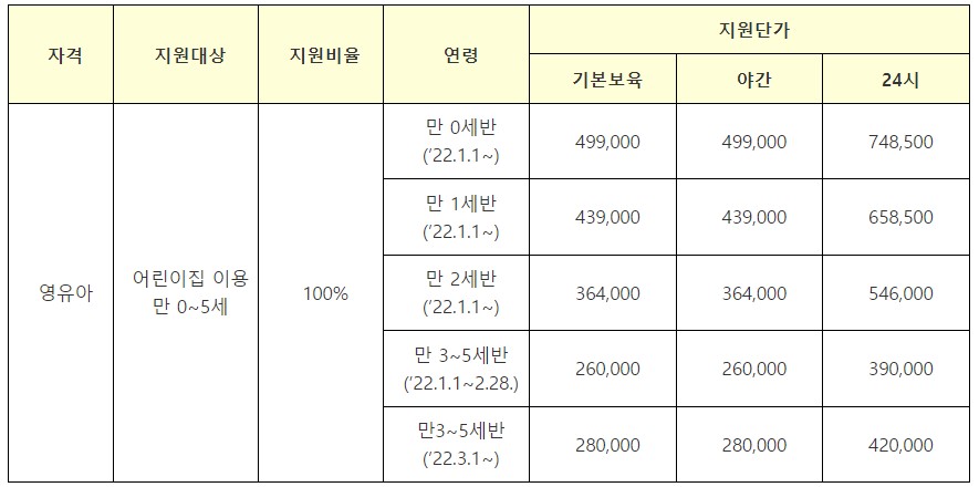국적과 주민등록번호를 유효하게 보유하고 있는 다자녀가구의 0~5세 영유아는 어린이집을 이용할 때 기본보육에 대한