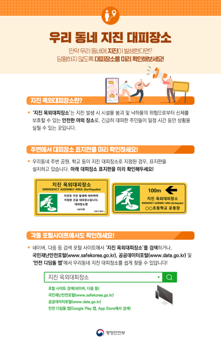 - 근거 없는 유언비어에 유의하고, TV, 라디오나 공공기관에서 제공하는 정보를 확인하여 지진 국민행동요령에 따릅니다.